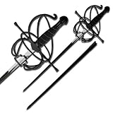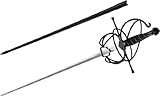Rapier generally refers to a relatively long-bladed sword characterized by a complex hilt which is constructed to provide protection for the hand wielding it. The KS-5918BK rapier stands 43.5″ overall with a mirror finished stainless steel silver blade, with black scabbard. Whether it be for private dueling, practice or self defense, this rapier is sure to fit all your needs.