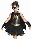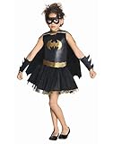 Your little Batman fan will love the Batgirl Tutu Costume – Girls. This costume includes a mini dress with a black top that has a gold Batman logo on the chest, an attached gold utility belt, a black pleated mini skirt with sheer gold and black trim, a gold trimmed short black cape, black gauntlets with gold trim and spikes, and a black eye mask with pointy Batgirl ear details. It’s based on the outfit Batgirl wears in comic books and TV shows, but it’s much cuter.