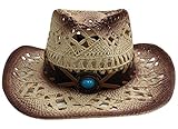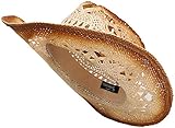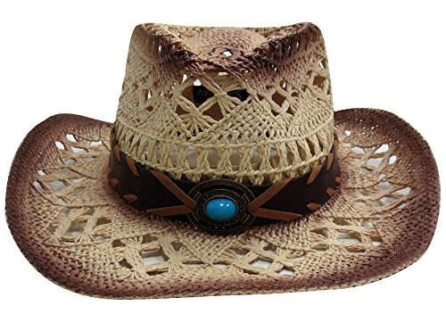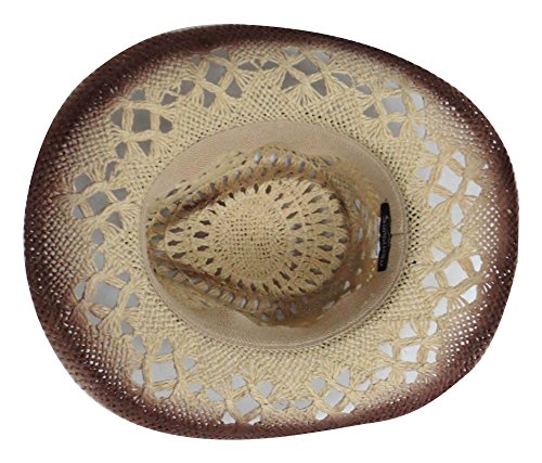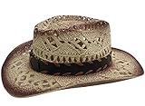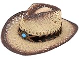 Kid’s cowboy or cowgirl straw hat with shaped, upturned brim, and teardrop crease.