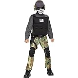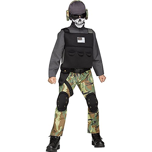 Includes Jumpsuit, Skull Print Balaclava, Vest, Belt, Thigh Holster, Knee Pads, Headphones,Tactical Glasses* (Novelty Glasses)
