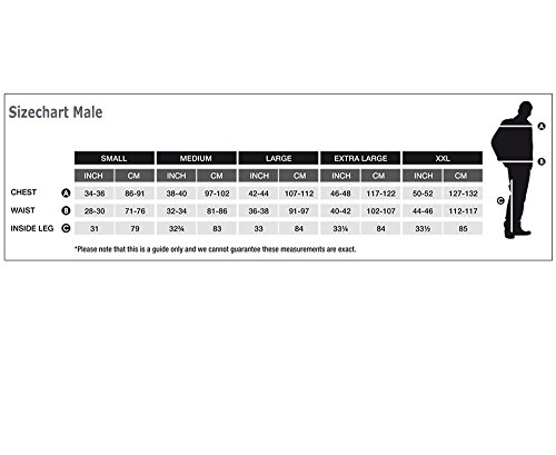 Size L: Chest: 42-44 inch, Waist: 36-38 inch, Inside Leg: 33 inch, lightweight subject material for comfort avoids overheating
