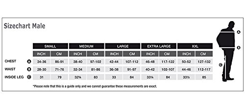 Size L: Chest: 42-44 inch, Waist: 36-38 inch, Inside Leg: 33 inch, lightweight subject matter for comfort avoids overheating