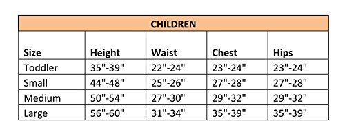 Small fits children 39 to 45 inches tall, weighing 38 to 42 pounds