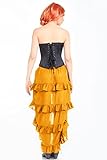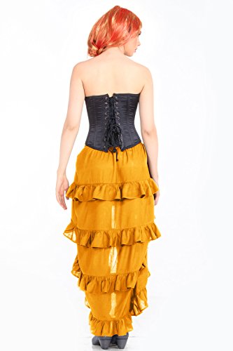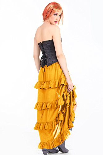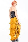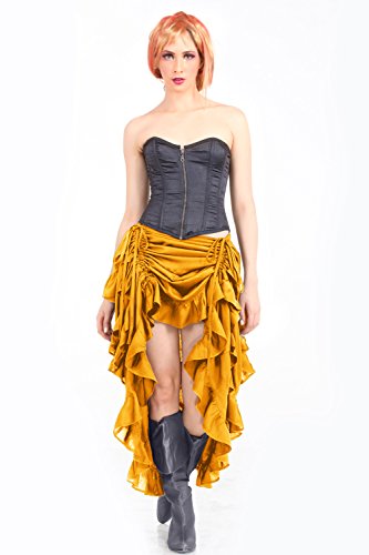 Steampunk Show Girl Skirt is made using soft & durable Rayon Fabric. The skirt has Four Tiers of Ruffles with adjustable length in front. The skirt can be worn down for Victorian styling, up on one side for Gypsy styling or front tied up for vintage burlesque looks. Waist has been elasticized for comfortable wearing.