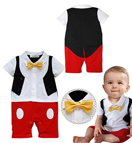 Super sublime and cute 3D bowtie Mickey Mouse romper onesie for photo prop, birthday celebration or any big day. Appropriate for age 6-36 months. An ideal gift on your little one!