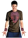 The Amazing Spider Man Movie Adult Kit Costume includes a brown printed shirt and a pair of web shooters. Does not include pants. This is an officially licensed Marvel (TM) Costume. This practical Movie Costume for men is available in adult sizes Large/X-Large, X-Large/XX-Large. This two-piece set will transform you into a superhero!Please note pants are not included.Care Instructions: Hand Wash