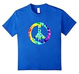 Tie dye peace sign t-blouse. Hippy gown, cool vibes, groovy tee blouse gift. Colourful psychedelic peace sign t blouse. Unfashionable 1960’s, 1970’s hippie tshirt with tie dye peace image. Amusing nostalgic glance or simple Halloween Hippie gown.