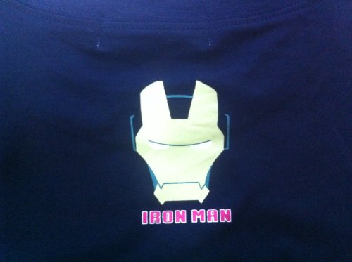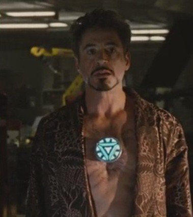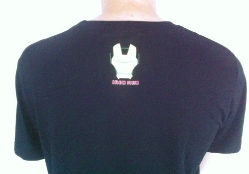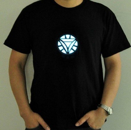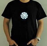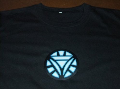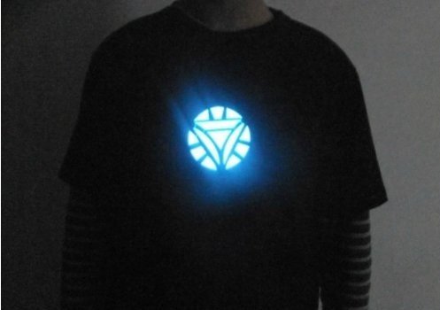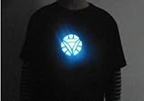 Black cotton t-shirt containing a light-up Arc Reactor.