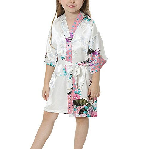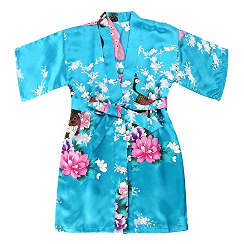 Girls’ Kimono Robe Bathrobe with Peacock Patterns .