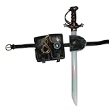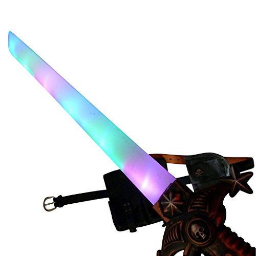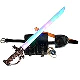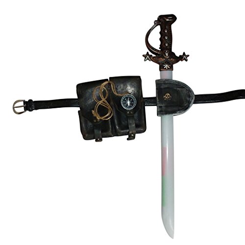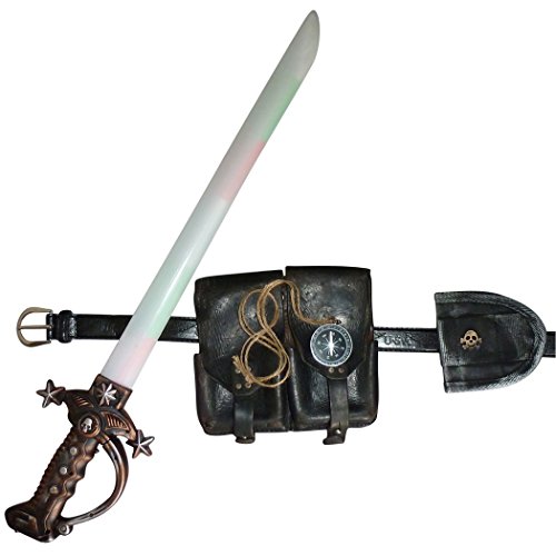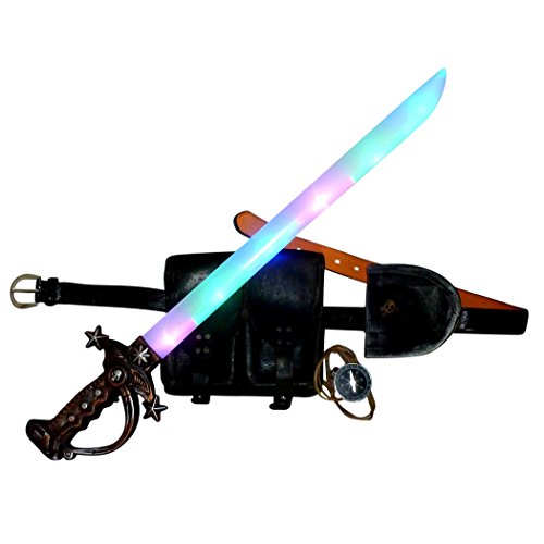 Set includes: LED light up sword roughly 25″ long, scabbard, ammo pouch, compass necklace, belt