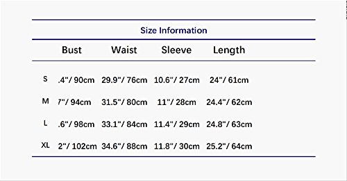 Size Information S Bust: 35.4″/ 90cm; Waist: 29.9″/ 76cm; Sleeve: 10.6″/ 27cm; Length: 24″/ 61cm; M Bust: 37″/ 94cm; Waist: 31.5″/ 80cm; Sleeve: 11″/ 28cm; Length: 24.4″/ 62cm; L Bust: 38.6″/ 98cm; Waist: 33.1″/ 84cm; Sleeve: 11.4″/ 29cm; Length: 24.8″/ 63cm; XL Bust: 40.2″/ 102cm; Waist: 34.6″/ 88cm; Sleeve: 11.8″/ 30cm; Length: 25.2″/ 64cm;