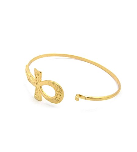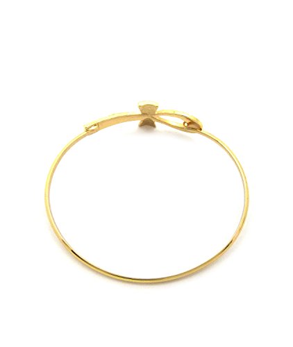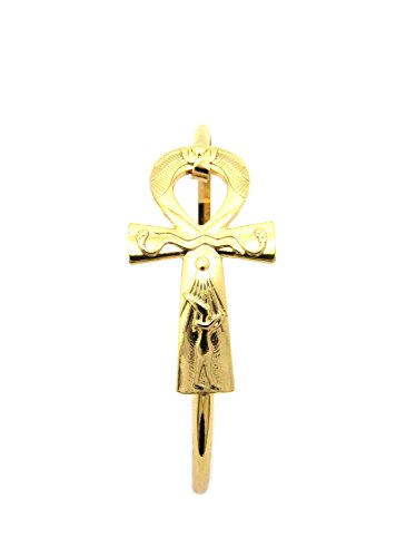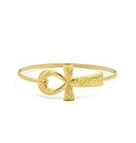 Women’s Egyptian Ankh Cross Piece Open Cuff Wire Bangle Bracelet in Gold Tone