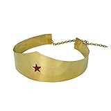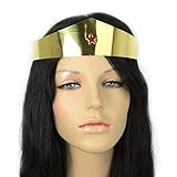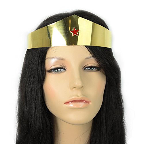 Female Superhero Wonder Woman Crown Beautiful, high quality crown. Perfect for completing your Amazonian princess Wonder Woman Costume. This golden crown is embossed with a red star, and has an adjustable chain with a lobster hook clasp. Material – Metal Color – Gold