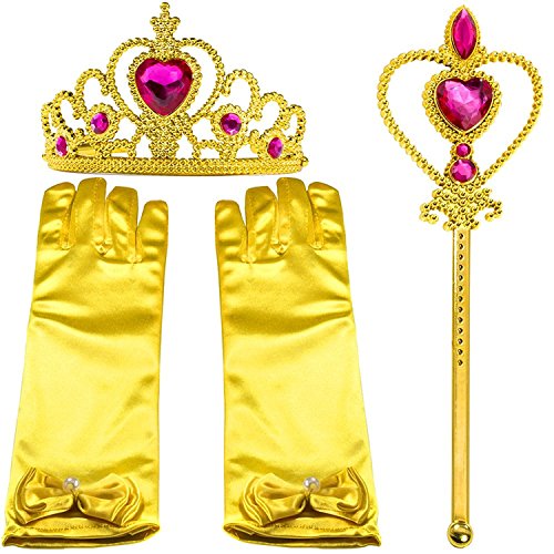 - Package include: 1 belle dress, 1 tiara/crown, 1 pair of gloves, 1 wand. For style 1, the wand is a fake rose, for style 2, the wand is a golden color scepter.