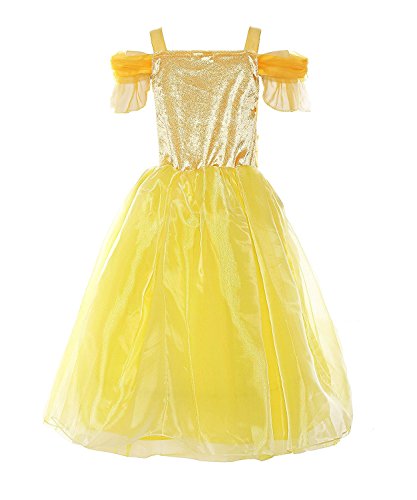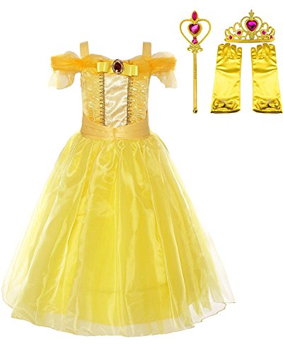 Yanekop Girls Beauty Yellow Party Dress Costume, Beauty and the Beast Costume With Accessories