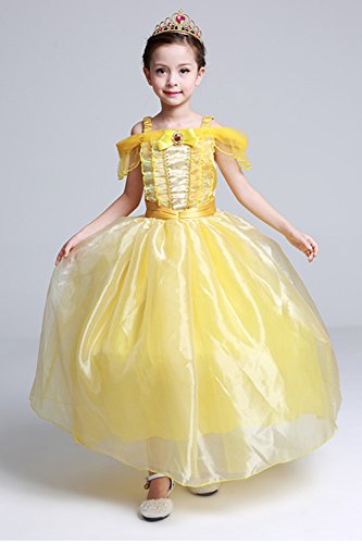 - For 2-4 years old girls, the costume dress is ankle-length, for 4-10 years old girls, it is knee length, princess belle dress set, off shoulder with shoulder straps, pullover style elastic waist, overlay three-layered hem, halloween costume clothes. Cute style.