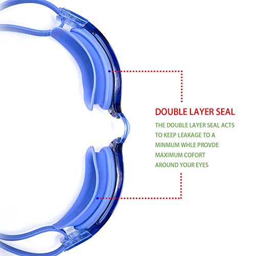 - Flexible silicone frame and gasket provides maximum comfort and goggle’s larger clear lens and quality sealing surface makes you feel comfortable.’s swimming goggles is leakage-proof but doesn’t leave a line and add excess pressure to maintain a good seal.