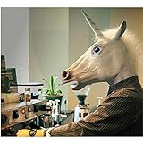 We’ve discovered yet another universal truth a person wearing a Unicorn Head Mask looks downright disturbing. But don’t take our word for it, wear this latex mask with realistic fur mane to your next social function and watch as people scramble to avoid you! How do you see? Through the Unicorn’s mouth and the nose holes. Has a “real” bushy hair mane. I had to look closely at the other parts because I could have sworn it had a fine dusting of hair all over. No, it’s just extremely realistic looking! Perfect for Masquerade Parties, Gifts, Costume Parties, Carnival, Christmas, Easter, New Years Eve Party, Halloween, etc. material: eco-friendly latex Size: Fits most adult heads Allergy warning 1.If you are allergic to latex, don’t wear this. 2.This product is normally have a smelling of latex , you can put it on the Ventilation place for one day .