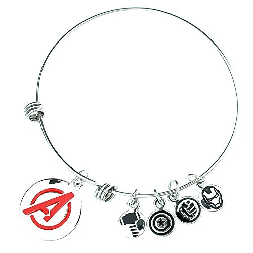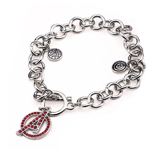 Avengers Womens Stainless Steel Red Enamel “A” Logo Charm Bracelet