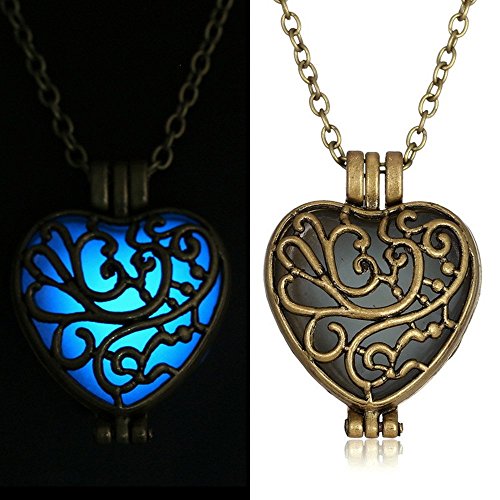 Dazzle Flash Vintage Brass Hollow Out Heart Glow In The Dark Magic Fairy Necklace N302-1