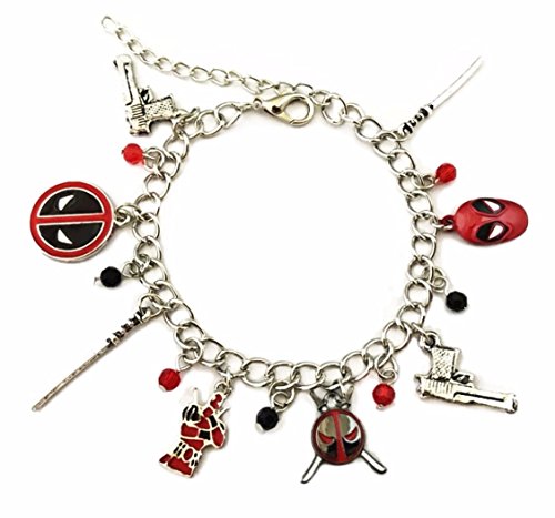 Deadpool 8 Themed Silvertone Metal Charm Bracelet