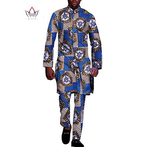 2017 Men’s Vintage Clothing Wear Stand Collar Shirt And Slender Pant Free Size Dashiki Print