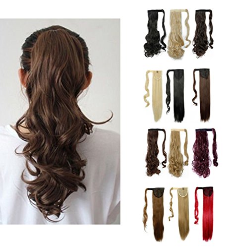 Wrap Around Synthetic Ponytail Clip in Hair Extensions One Piece Magic Paste Pony Tail Long Straight Soft Silky for Women Fashion and Beauty