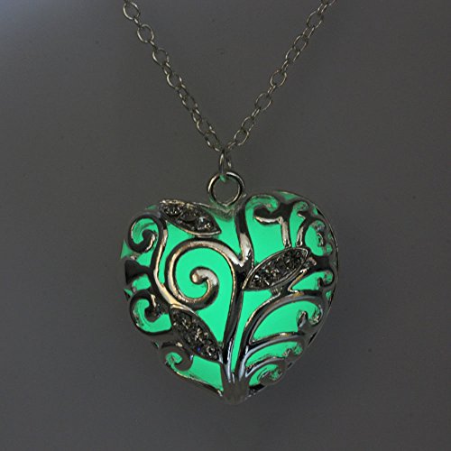 FM42 Glow in the Dark Heart Locket Pendant Necklace (Green/Blue/Purple Light)