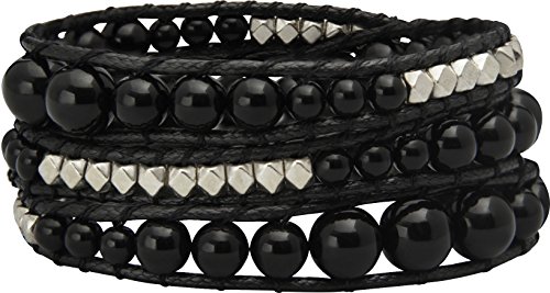 Genuine Stones 3 Wrap Bracelet – Bangle Cuff Rope With Beads – Unisex – Free Size Adjustable