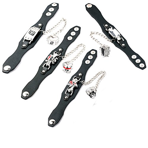 Generic Black Anime Pu Leather Bracelet With Ring Charms Punk Cosplay
