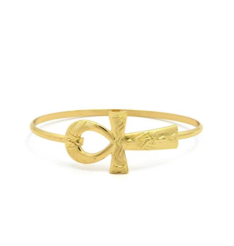 Women’s Egyptian Ankh Cross Piece Open Cuff Wire Bangle Bracelet in Gold Tone (Many Kinds Available)