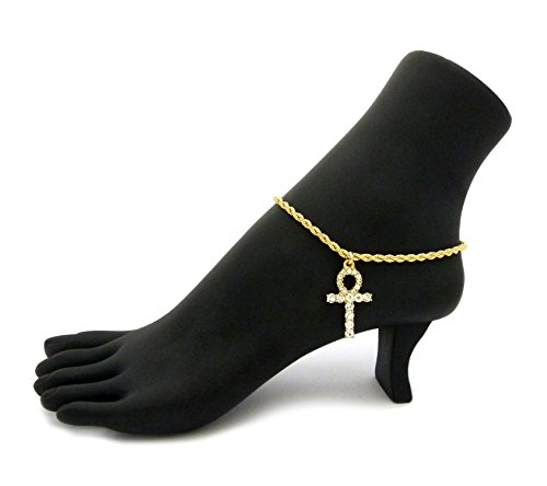 Women’s Egyptian Ankh, Queen Nefertiti Piece 2.5mm 10″ Rope Chain Anklet Foot Bracelet in Gold Tone