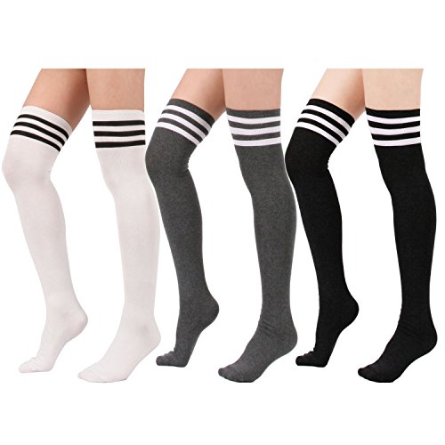 Menglihua Women Warmers Stripe Tube Athlete Cosplay Stockings Over Knee High Socks