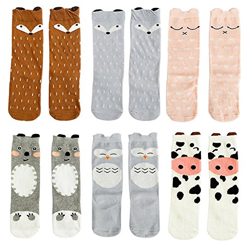 Unisex Baby Girls Socks,Gellwhu 6 Pairs Toddler Boy Animal Knee High Socks