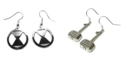 Silver Black Widow Logo and Thor Hammer With Writing Dangle Earrings w/Gift Box