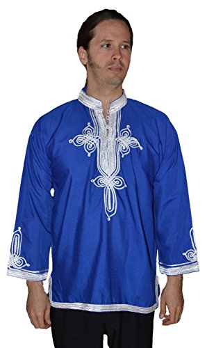 Marrakesh Men Tunic Caftan With White Tread Embroidery Breathable X-large Blue
