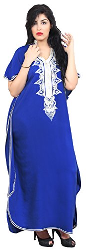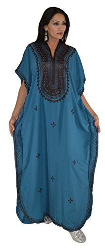 Moroccan Caftan Hand Made Top Quality Breathable Cotton with Hand Embroidery Long Length Blue