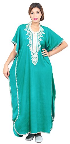 Moroccan Caftan Hand Made Top Quality Breathable Cotton with Hand Embroidery Long Length Green