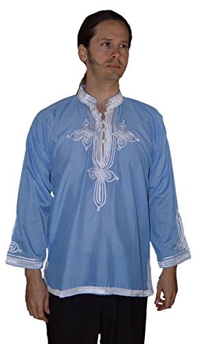 Marrakesh Men Tunic Caftan With White Tread Embroidery Breathable X-large Light BLue