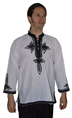 Marrakesh Men Tunic Caftan With White Tread Embroidery Breathable X-large White&Black