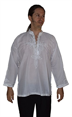 Marrakesh Men Tunic Caftan With White Tread Embroidery Breathable X-large White