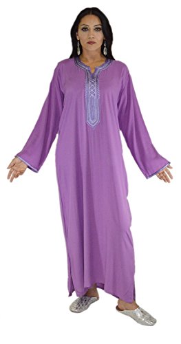 Moroccan Caftans Women Handmade with Embroidery Medium to X-large Breathable Lavender