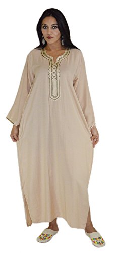 Moroccan Caftans Women Handmade with Embroidery Long Length One Size Beige