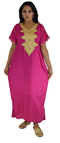 Moroccan Handmade Women Caftan Gold Embroidery Cotton fits SMALL to MEDIUM Magenta