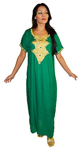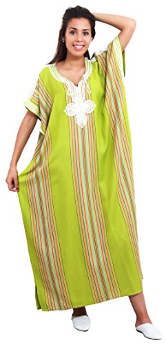 Moroccan Caftans Women Light Linen Handmade Embroidery SMALL to LARGE Lime