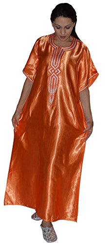 Moroccan Caftans Women Ladies Embroidered Satin Fits SMALL to LARGE Orange