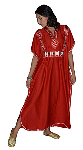 Moroccan Caftans Womens Ladies Embroidered Long Length One size Kaftan Red