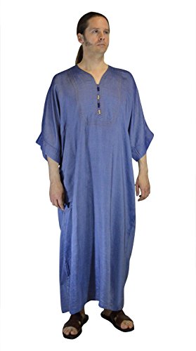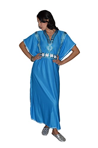 Moroccan Caftans Women Handmade with Embroidery Long Length One Size Blue
