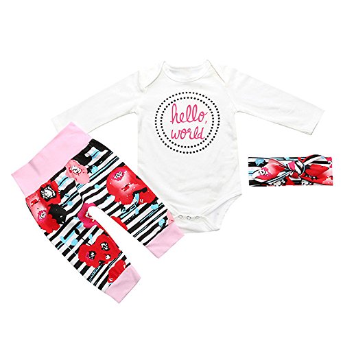 LUNIWEI Baby Girls Letter Romper Tops Pants Headband 3PCS Outfits