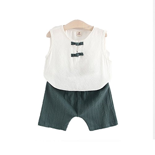 FangNer Chinese Wind Boys and Girls Cheongsam Cotton Linen Vest Suit Tang Hanfu Apparel